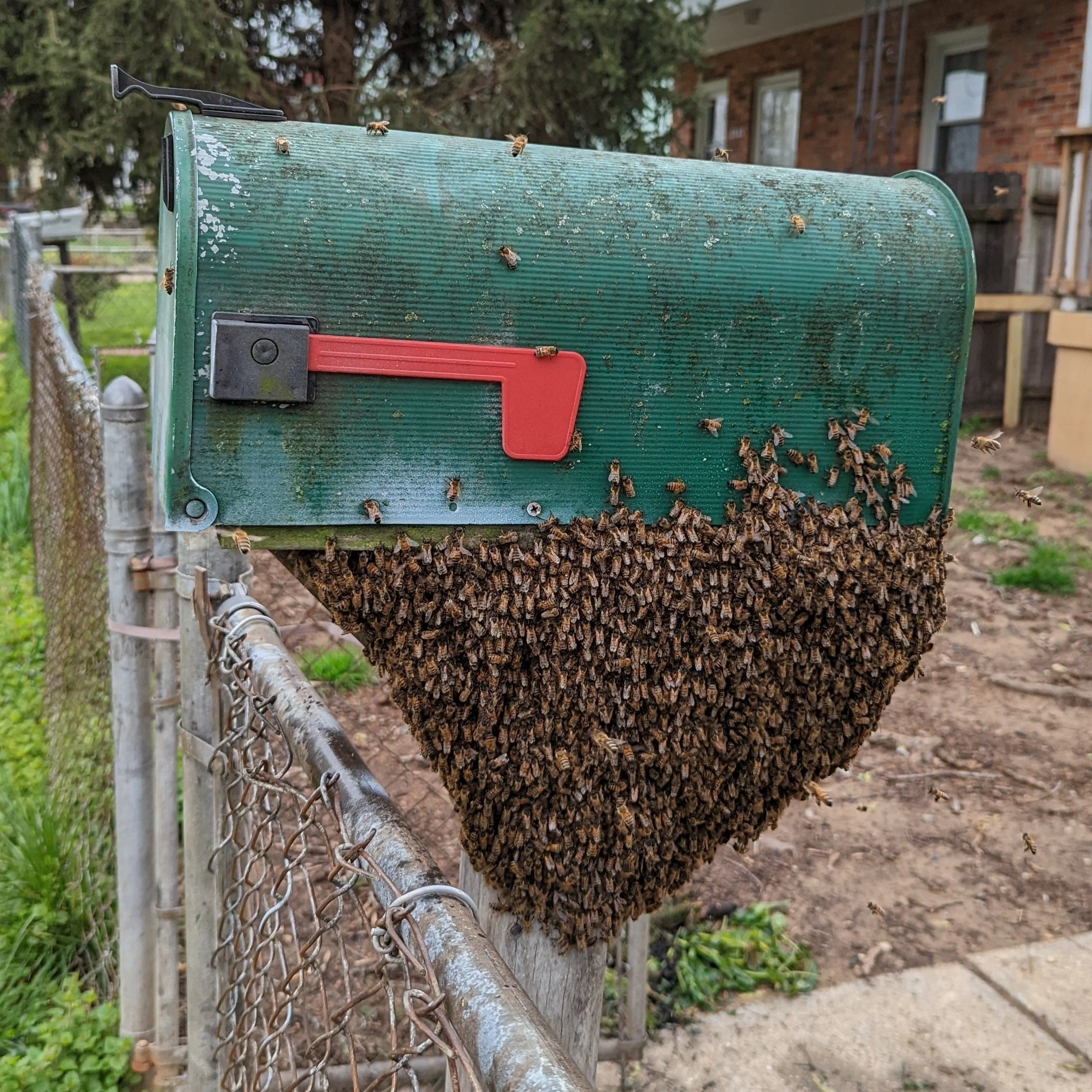 We’ve caught swarms on fire hydrants, cars, picnic tables, trampolines, chain-link fences, shopping carts, stop signs, lampposts, mailboxes, inside garbage cans, compost bins, metal pipes and outdoor grills, and natural places like bushes and tree branches.
